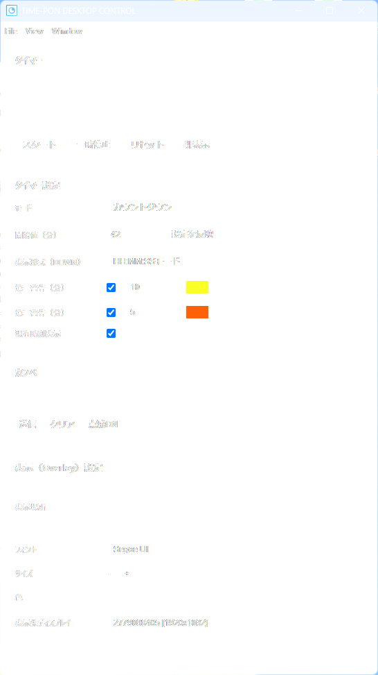 透明で最前面・クリック不可の「タイマーオーバレイの表示」と、